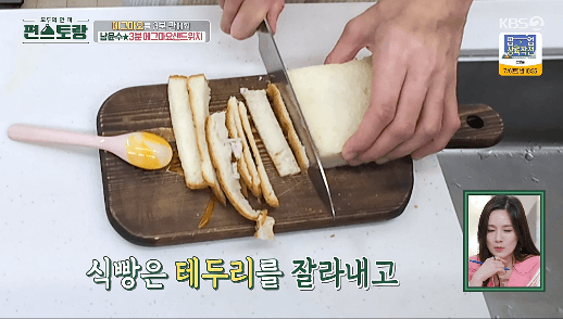 3. 식빵 2장의 가장자리를 잘라줍니다.