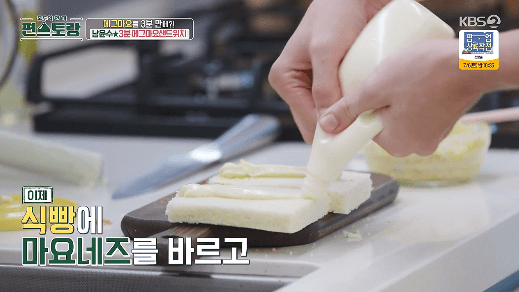 10. 식빵에 마요네즈를 발라줍니다.