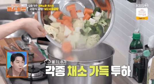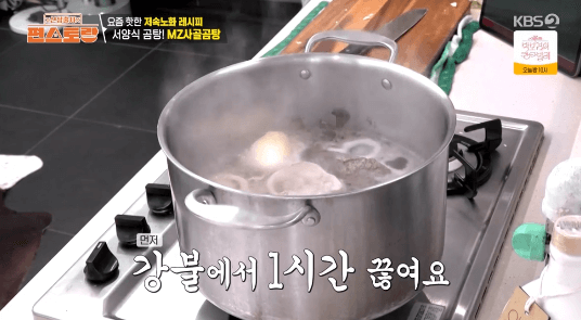 남윤수씨가 아버지 건강을 위한 맑은 국물의 야채가 가득 들어간 사골곰탕을 끓인다고 합니다. 일명 요즘 핫한 저속노화 레시피라고 하는데, 아주 맛있을 것 같아요.