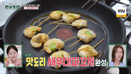 5. 다 구우면, 새우대파꼬치가 완성됩니다.