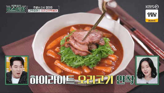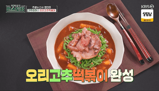 오리고추떡볶이?! 뭐지 하는 생각이 듭니다. 떡볶이에 오리라고? 뭘까 싶은데요. 만들어 놓고 보니, 이건 그냥 떡볶이가 아니라 요리입니다. 너무나 고급스러운 떡볶이네요. 이런 떡볶이는 얼마에 팔아야 할까 싶은 생각이 들 정도입니다. 떡볶이 양념장에 들어가는 카레가루와 후춧가루가 맛의 비법이라고 합니다.