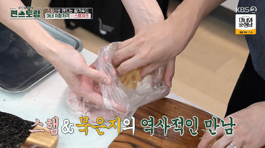 묵은지 손질 과정은 이전에 이상엽씨가 요리하는 묵은지 육회김밥, 묵은지깻잎 포스팅을 참고하세요.