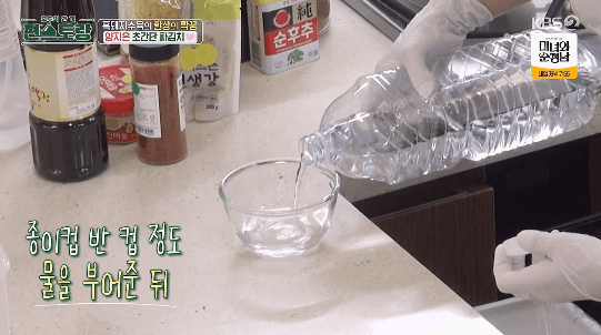 2. 물 90ml를 양념장을 만들 볼에 담습니다.