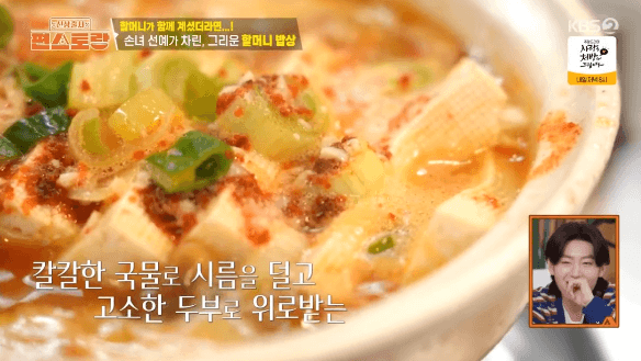 선예씨가 할머니가 예전에 해 주시던 두부찌개 맛을 재현 한 레시피를 소개했습니다. 무척 간단하지만, 선예씨의 추억이 담긴 레시피 같이 알아봐요.