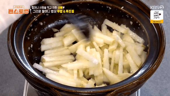 한 번에 2가지를 만들 수 있는 요리입니다. 먼저 무조림을 만들고, 깻잎을 넣어서 깻잎찜까지 만들 수 있으니 반찬 걱정이 줄겠네요. 무조림, 깻잎찜 - 이상우의 간장 무조림 만들기 편스토랑, 이