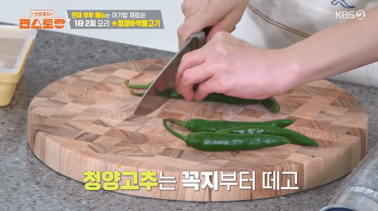 8. 청양고추 4개는 꼭지를 제거합니다.