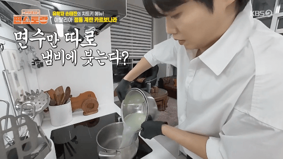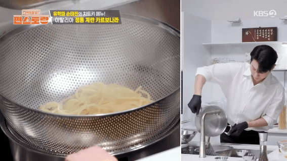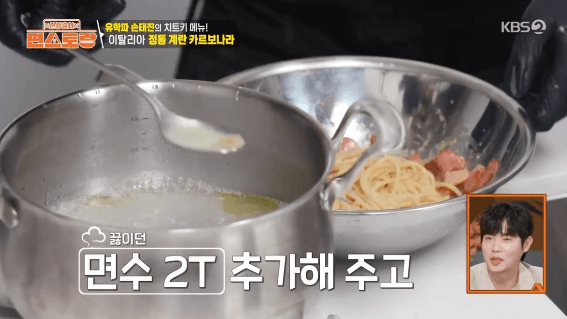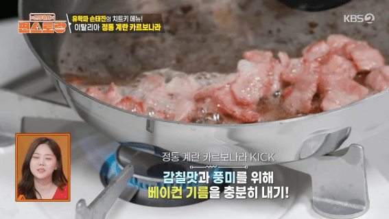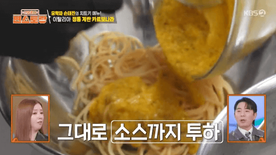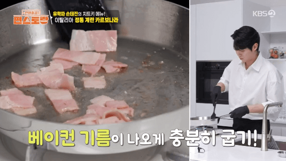손태진씨가 이태리 유학시절에 본토 이태리에서 배운 까르보나라를 만들어 보겠습니다. 생크림을 사용하지 않고, 달걀을 사용해서 만드는 정통 요리 방식입니다.