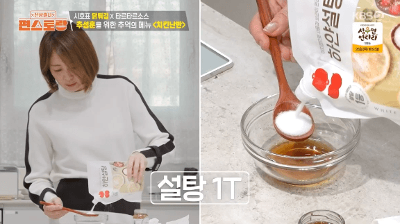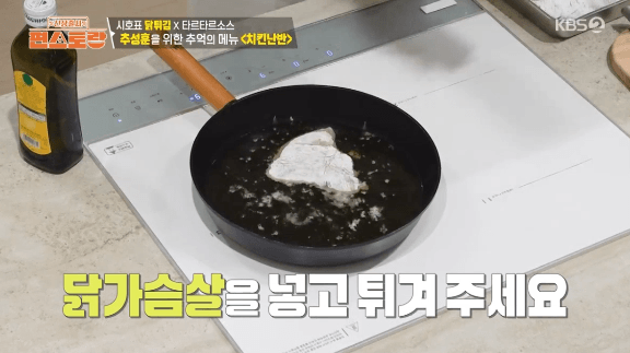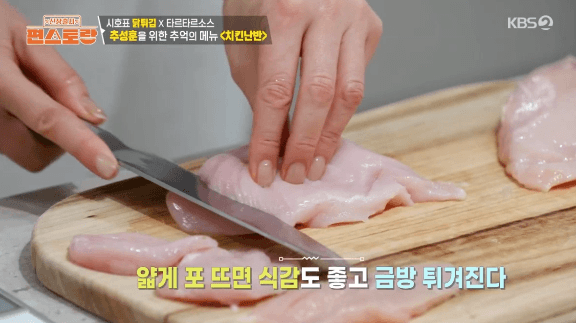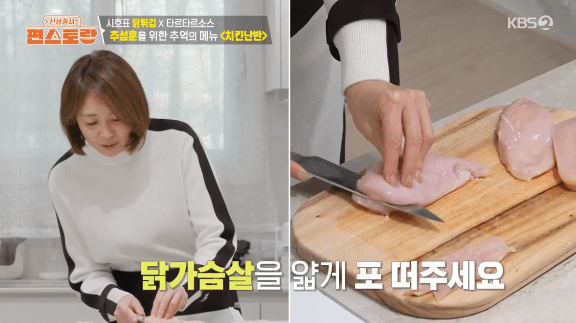 야노시호씨가 결혼기념일에 맞춰 추성훈씨에게 도시락 선물을 한다고 합니다. 메뉴가 치킨난반인데요. 보통은 닭다리살로 만드는데, 관리하는 남편을 위해서 닭가슴살로 만든다고 합니다.