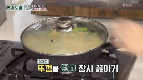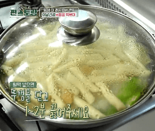11. 밀떡을 넣고, 뚜껑을 닫고 1~2분 정도 끓여줍니다.