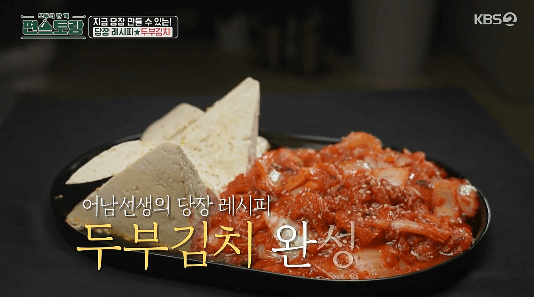 류수영씨가 집에 있는 재료로 지금 당장 만들 수 있는 당장 레시피를 제안한다고 합니다. 그 첫 번째 메뉴는 두부김치입니다. 흔하게 집에 있는 재료로 당장 만들 수 있는 당장 두부김치 만들어 보겠습니다. 익은 김치면 좋겠지만 익은 김치가 없더라도 방법이 있으니깐, 천천히 따라오세요.