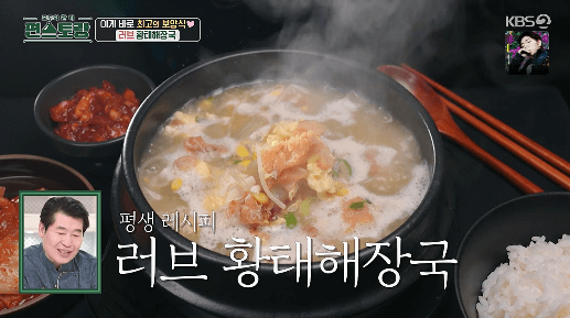 황태해장국은 이거 하나만 알면 평생 써먹을 수 있는 어남선생 류수영씨의 황태해장국 평생 레시피를 알아보겠습니다. 이 레시피로 몇 번만 연습하면, 언제나 가게에서 파는 것 같은 맛있는 황태해장국을 즐길 수 있습니다. 맛보장 레시피, 어남선생 류수영씨의 평생 황태해장국 만들어보세요. 이 레시피로 부인에게 황태해장국 끓여주면 사랑받는 남편 되실 거예요.