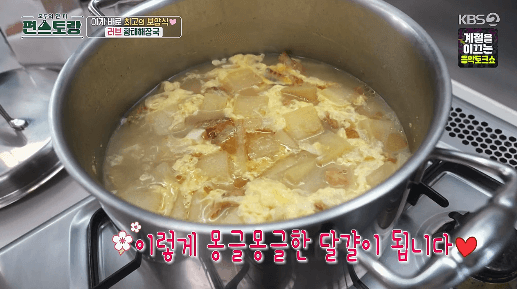 아래 버튼을 눌러서, 류수영씨의 상세한 설명과 함께 황태해장국 만드는 과정을 영상으로 확인하세요.