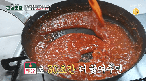 7. 양념이 끓을 때까지 저으면서 강불에서 끓여줍니다.
