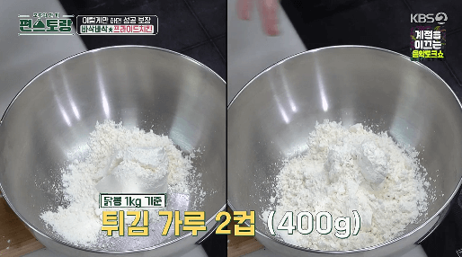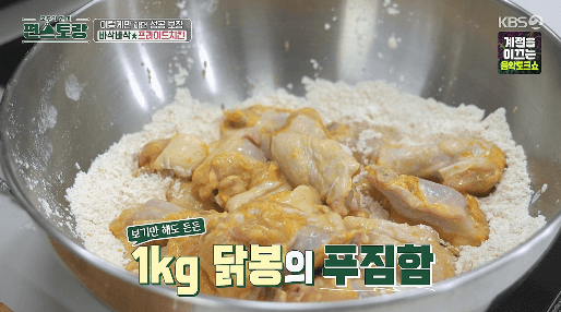 그동안 류수영씨가 편스토랑에서 만원 치킨 레시피를 몇 가지 공개했습니다. 그렇게 닭으로 여러 가지를 만들지만, 그래도 뭐니 뭐니 해도 가장 궁금한 것은 프라이드치킨과 양념치킨이겠죠?! 드디어 이번 방송에서 닭봉으로 프라이드치킨을 만들고, 반절은 그대로 프라이드로 나머지 반은 양념을 묻힌 양념치킨을 만들었습니다. 먼저 프라이드치킨을 만들어야 양념치킨도 만들겠죠?! 그럼, 프라이드치킨부터 만들어보겠습니다.
