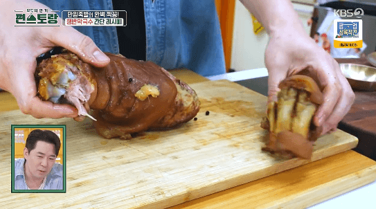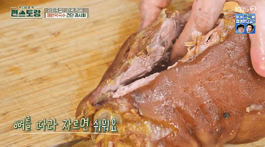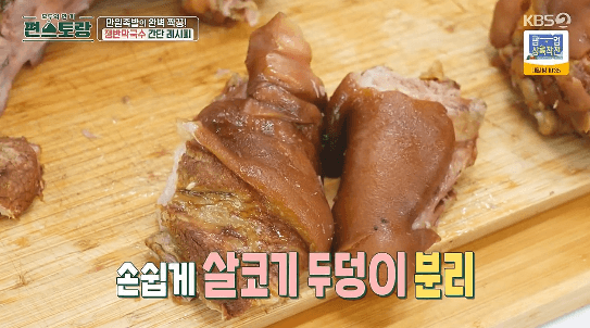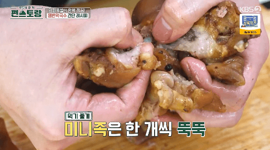 21. 식힌 족발의 발목 부분을 분리합니다.