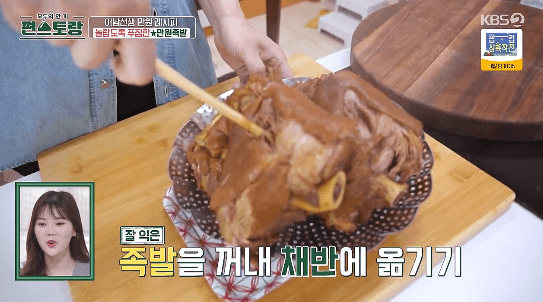 19. 뚜껑 닫고 1시간 10분이 지나면, 돼지 족발이 다 삶아졌습니다.