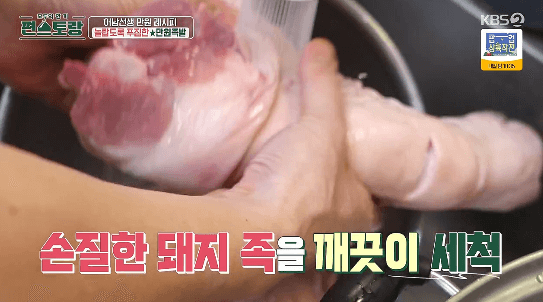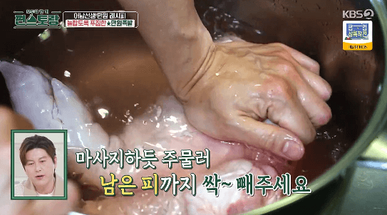 5. 족을 눌러 핏물을 빼고, 헹궈줍니다.