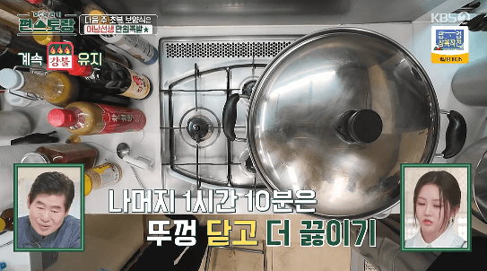 17. 30분 뒤에는 뚜껑을 닫고 1시간 10분 끓여줍니다. 더 부드러운 식감을 원한다면 1시간 20분 삶아줍니다.