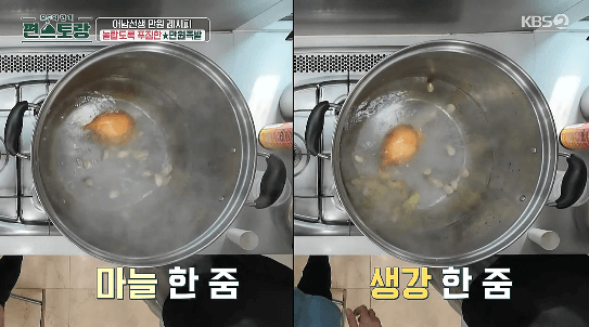 10. 마늘 한 줌, 생강 한 줌을 넣어줍니다.