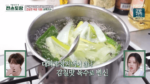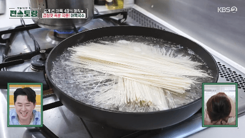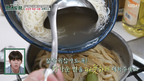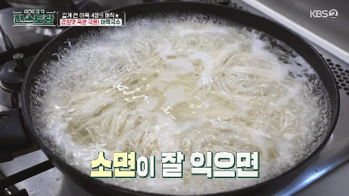 8. 어묵국수의 육수가 만들어졌습니다. 불을 끕니다.