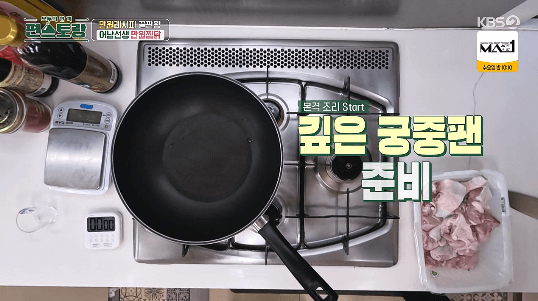 9. 궁중 팬(웍)을 강불로 예열합니다.