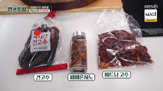 7. 파는 맛을 내기 위해서는 건고추를 넣어줘야 합니다. 고춧가루 말고, 건고추를 넣으세요. 류수영씨는 베트남 건고추를 사용했는데, 페페론치노나 일반 건고추를 사용해도 됩니다.