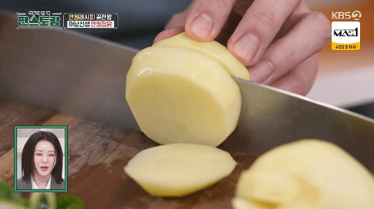 5. 감자 3개를 납작하게 4등분으로 썰어줍니다.