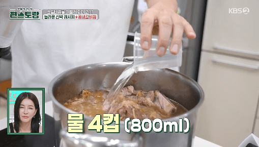 17. 물 4컵(800ml)을 부어서 갈비가 물에 잠기도록 합니다.