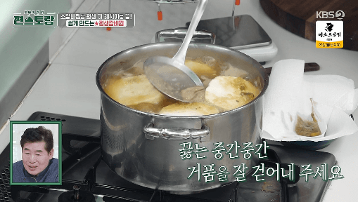 20. 뚜껑을 열고, 강불에 끓여줍니다. 끓는 중간중간 거품을 걷어냅니다.