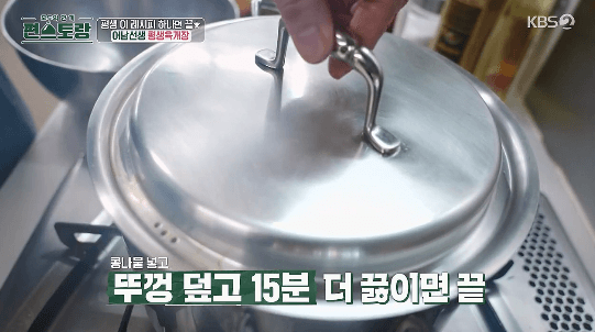 22. 20분 후 뚜껑을 열고, 콩나물을 넣습니다. 다시 뚜껑을 닫고 15분 끓여줍니다.