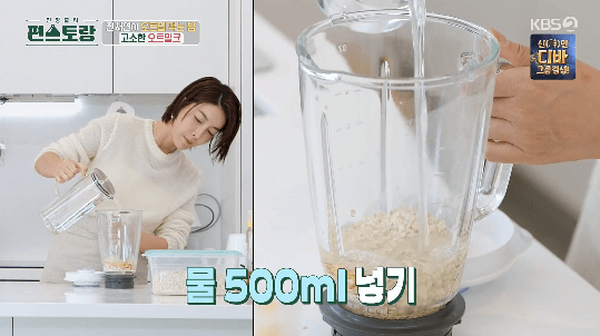 3. 물 500ml를 넣고 믹서기를 갈아줍니다.