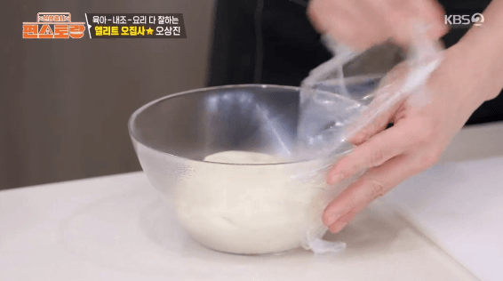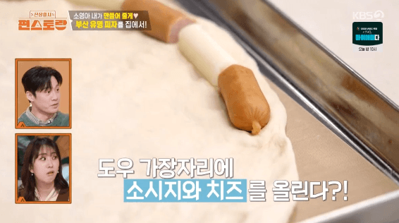 오상진씨가 부산의 유명한 피자집 맛을 구현해 낸, 일명 오재모 피자를 만든다고 합니다. 도우 반죽에 스트링치즈와 프랑크 소시지를 넣는 게 포인트예요.