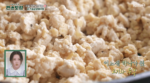 7. 두부와 닭가슴살이 잘 섞이고, 고슬하게 볶아줍니다.