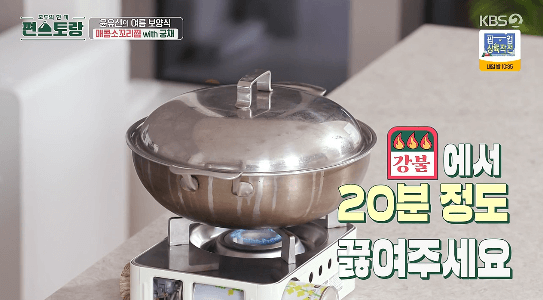 26. 강불에서 20분 정도 끓여줍니다. 끓기 시작하면 다시마 주머니를 꺼냅니다.