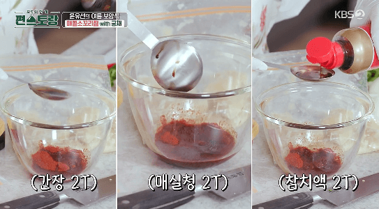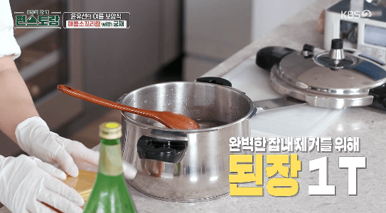 7. 윤유선씨는 청주에 생강을 넣어 만들어 놓은 생강술 3큰술을 넣었는데요. 청주나 소주를 사용해도 됩니다.