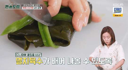 23. 다시마에 칼집을 내서, 멸치육수가 밖으로 우러나오게 해 줍니다.