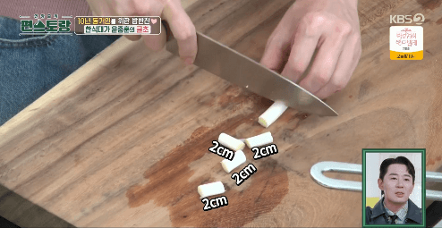 2. 대파 흰 부분을 2cm 길이로 잘라줍니다.