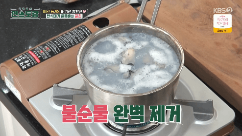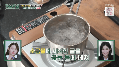 5. 끓는 물에 세척한 굴을 넣고 데칩니다.