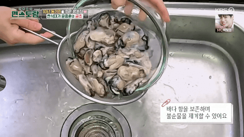 7. 굴을 체에 밭쳐 물기를 빼줍니다.