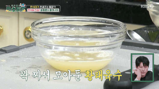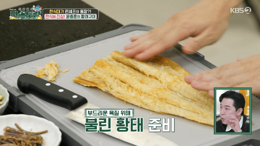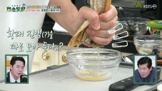 황태구이를 만들 건데, 윤종훈씨가 만든 다시마 기름을 사용합니다. 물론, 식용유를 사용해도 됩니다. 하지만, 윤종훈씨의 다시마 기름이 궁금하시다면, 만드는 방법을 참고해보세요. 어렵지 않으니까요.