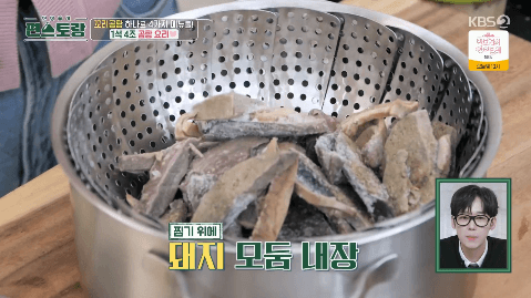 1. 찜기에 돼지 모둠 내장을 넣습니다.
