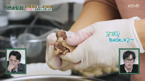 9. 소꼬리의 살과 뼈는 손으로 분리합니다.