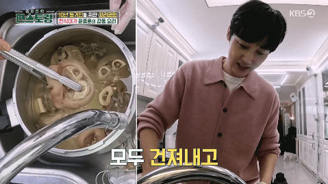 고소하고 진한 꼬리곰탕을 먼저 만들겠습니다. 그리고, 꼬리곰탕 국물을 활용해서 들깨 닭곰탕, 순댓국, 바지락 수제비를 만듭니다. 꼬리곰탕으로 시작해서 다양하게 즐길 수 있는 방법을 윤종훈씨가 알려준다고 합니다.