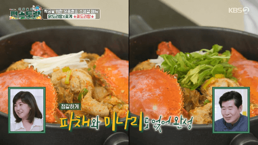 닭볶음탕인데 꽃게가 들어가서 더 맛있는 요리입니다. 닭볶음탕의 업그레이드된 꽃도리탕을 윤종훈씨의 레시피로 만들어보세요. 압력솥을 이용하면 요리를 빠르고, 쉽게 할 수 있으니깐 참고하세요.