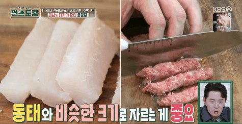 윤종훈씨가 직접 동태를 손질하고, 포를 떠서 동태전을 만든다고 합니다. 포를 뜰 때에도 요령이 있다는데, 정성 들여 한식을 만드는 윤종훈씨의 동태전 만드는 방법 알아보겠습니다. - 윤종