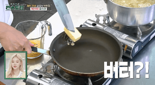 4. 달군 팬에 버터를 넣고 녹여줍니다.
