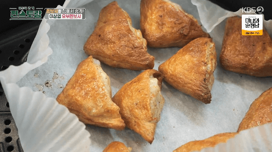 이번 방송에서는 이상엽씨가 간식으로도 먹을 수 있고, 손님 접대용으로도 좋은 요리를 몇 가지 만들었습니다. 유부멘보샤도 그중에 하나인데요. 멘보샤 하면 식빵 사이에 넣은 재료가 밖으로 빠져나오지 않도록 만드는 게 여간 신경 쓰이는 일이 아닙니다. 그런데, 유부를 사용하면 멘보샤의 모양을 잡기 편하고 만들기도 쉽습니다. 유부를 사용해서, 맛있는 멘보샤 쉽게 만들어보세요.