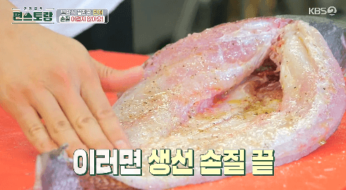 1. 손질한 민어를 깨끗하게 씻은 뒤 물기를 제거해 줍니다.