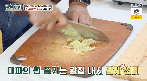 2. 대파의 흰부분을 반으로 자른 뒤 잘게 썰어줍니다.