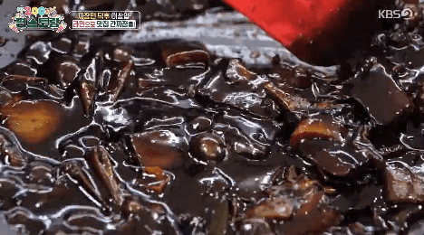 10. 물을 넣고 졸여주면 간짜장 소스 완성입니다.